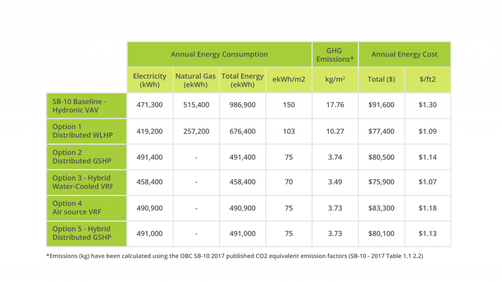 In Ontario, electricity is primarily sourced through hydro and nuclear power, with a small percentage of renewables, gas and biofuel. The result is a very “clean” electricity supply, which impacted our analysis and decisions made regarding system selection. In other parts of Canada, the decisions may be different based on the sources of energy available, but the principles remain the same.