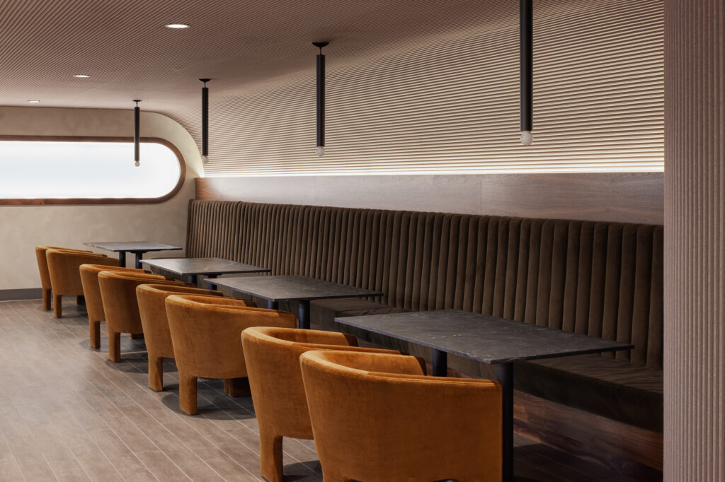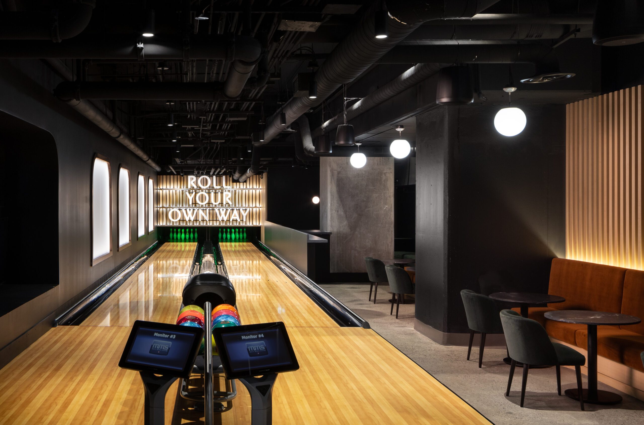 The second venue  in the city for this brand, which was designed to be a sophisticated take on a traditional bowling alley, contains a wood-feature ceiling with integrated lighting that greets guests upon entry. The project also provides direct connection to Yonge Street and the  Yonge/Bloor Subway station.