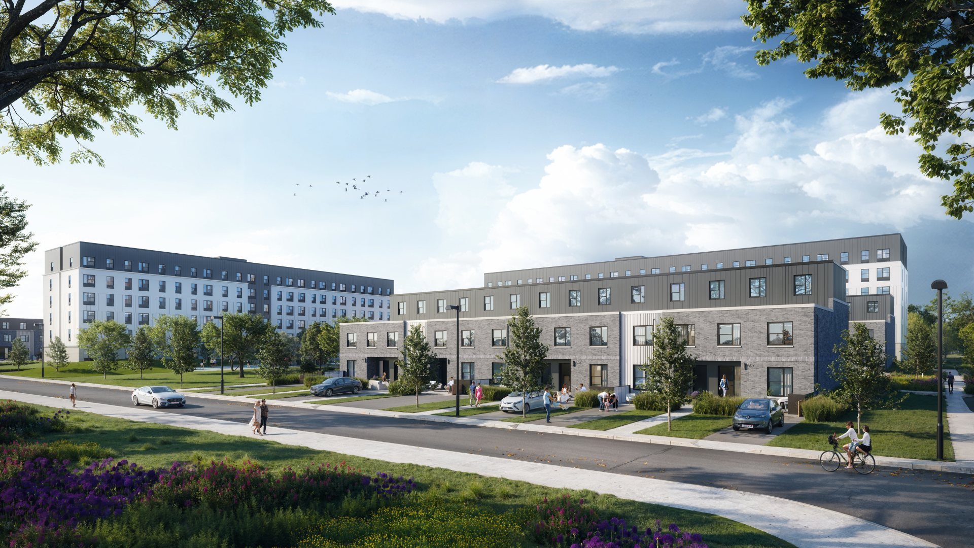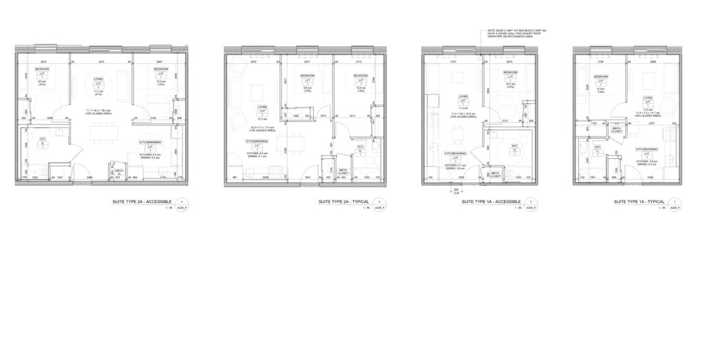 The proposed design includes a mix of apartment buildings and townhomes. The layout of the new complex preserves 47% of the overall lot as dedicated to landscaping creating new community pathways and enhancing its greenspace. There are seven buildings on the site, including four structures arranged as stacked townhouses, and two taller 6-storey apartment buildings and over 26% of each unit type will be accessible. The project currently has conditional site plan approval and is in the design development phase.