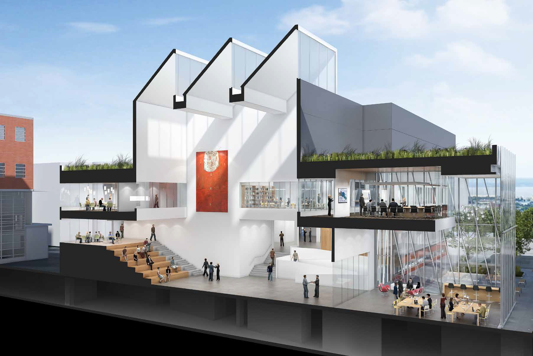 Hamilton Health Sciences’ vision for the Escarpment Cancer Research Institute was a joint research institute, a partnership between Hamilton Health Sciences and McMaster University. The goal for the addition to the Juravinski Hospital site was to bring together several strong, well-established, and successful cancer research groups that exist at the Juravinski Hospital and Cancer Centre and McMaster University, in addition to a relatively new and emerging translational research group.