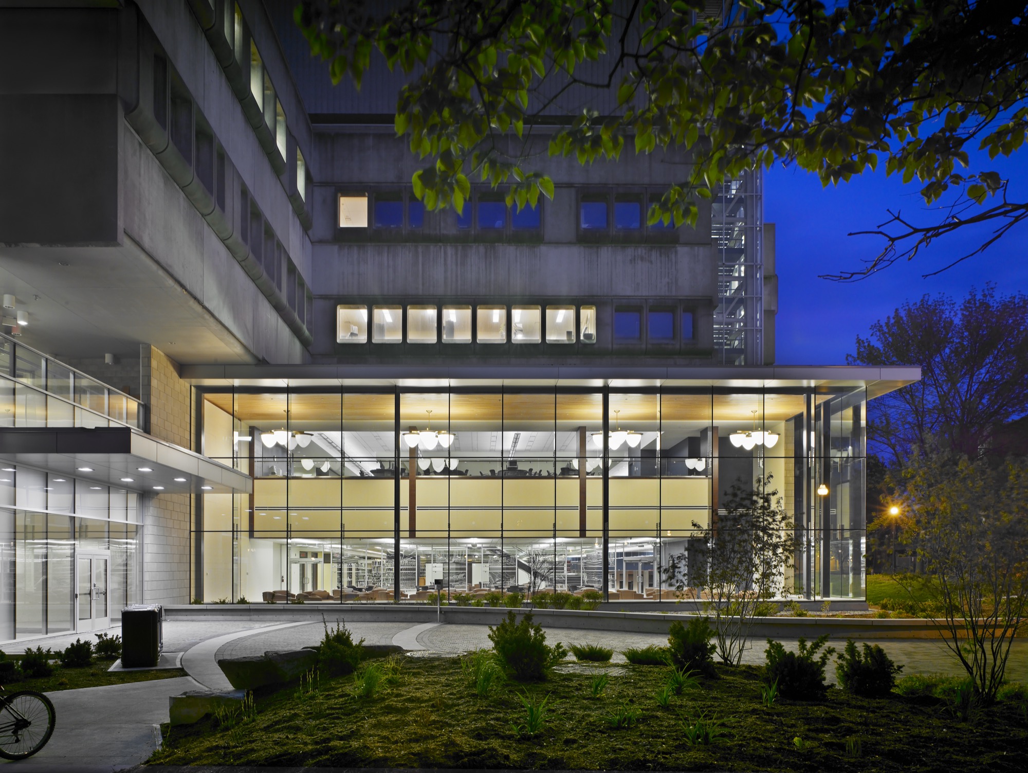 By removing the entire first and second floor exterior, the award-winning two-storey addition took a concrete enclosed corner and transformed it into a light filled structure creatively making use of the high-profile site. The forward-thinking layout placed an emphasis on programming space over storage, and shaping a diversity of environments that support the various ways in which its students and faculty learn and interact with a library environment. Over a decade later, there have been minimal renovations or changes, and it remains one of the most in-demand spaces on campus with an impact far beyond the Health Sciences Faculty.