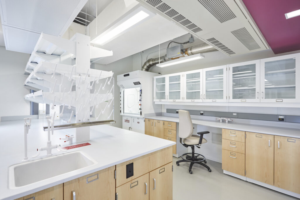 I love taking the boring, banal, white lab and making it playful, fun, and a place where lab teams look forward to working,” describes Liam Brown, Principal in Charge, mcCallumSather.There is an efficiency component to that, whereby you’re taking a complex problem of dead ends and duplicate paths of travel, straightening that out into something rational and efficient.